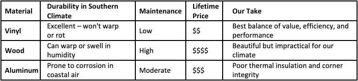 Not sure what type of replacement window is right for you? Here’s how the most common materials compare: