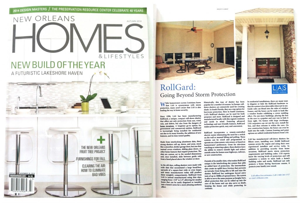 Did you see us in the Autumn 14 issue of New Orleans Homes & Lifestyles Magazine? Our RollGard shutters were featured in an advertorial talking all about the benefits they provide to your home. Read on below!