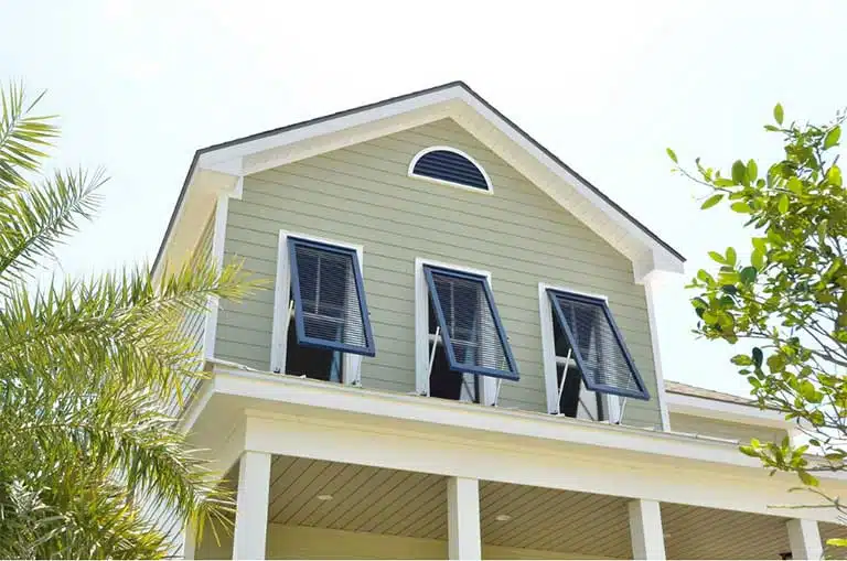 - Bahama Shutters: Hinged at the top and propped open for shade and airflow while providing storm protection when closed.